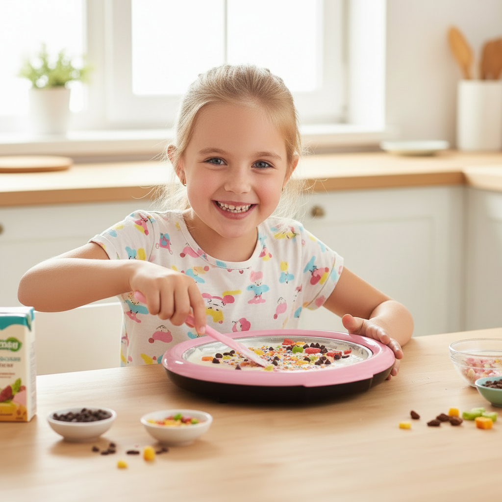 Permite hacer helado tradicional, sorbetes, yogur helado, mezclas saludables, postres con toppings y todo lo que puedas imaginar. Es una bandeja para experimentos creativos.